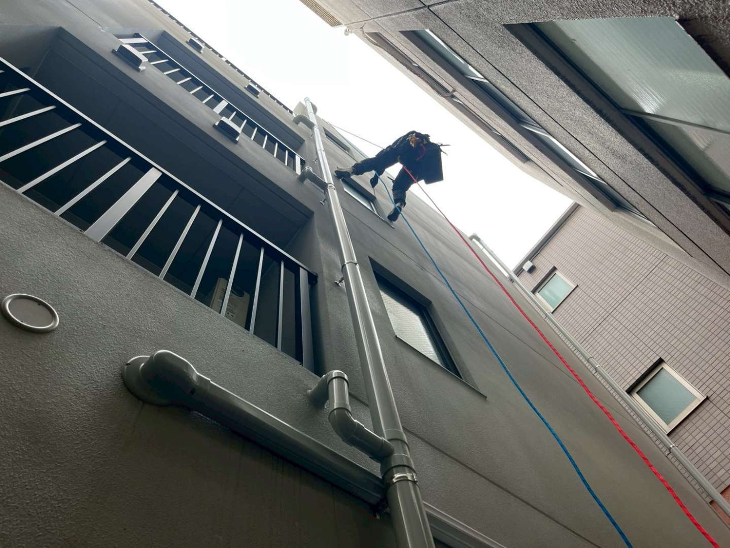 ロープアクセスの提案: 安全管理のための監視員・補助を含めても総額7万円程度。